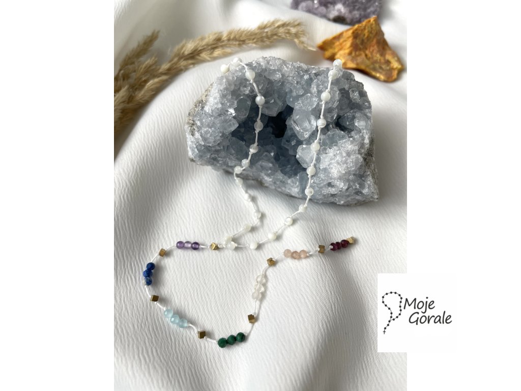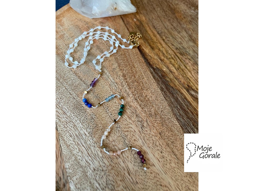 Jeho energiu doplňujú kamene vo farbách čakier.