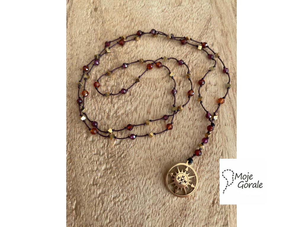 Náhrdelník granát, hessonit, hematit kocky.